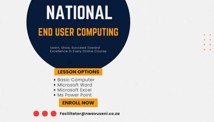 The National End User Computing course is designed to equip learners with fundamental computer knowledge and practical skills required to use a computer confidently in personal, educational, or workplace environments. The course focuses on basic computer operations, software usage, and responsible use of technology.